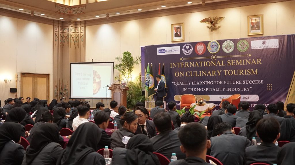 Sentra Jateng – Surakarta, 5 Mei 2025 – Program Studi D3 Perhotelan Politeknik Indonusa Surakarta sukses menggelar International Seminar on Culinary Tourism yang dilaksanakan di Hotel Grand Sahid Surakarta. Acara ini menjadi ajang penting dalam mengembangkan wawasan mahasiswa dan pelaku industri terhadap potensi pariwisata kuliner di Indonesia maupun mancanegara.