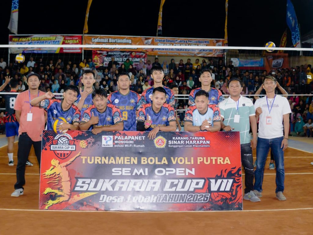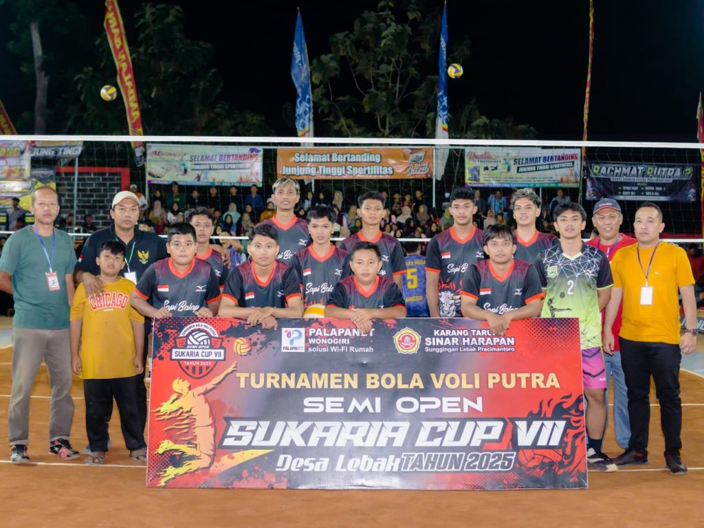 Sentra Jateng – Turnamen bola voli Sukaria Cup VII yang digelar di Desa Lebak, Kecamatan Pracimantoro, Kabupaten Wonogiri resmi berakhir pada Sabtu, 26 Juli 2025. Ajang olahraga tahunan ini tidak hanya menjadi tontonan menarik bagi pecinta voli, namun juga menjadi ajang silaturahmi dan penggerak ekonomi lokal. Dengan antusiasme masyarakat yang luar biasa, turnamen tahun ini mencatat sejumlah pencapaian penting dan kesan mendalam dari berbagai pihak.